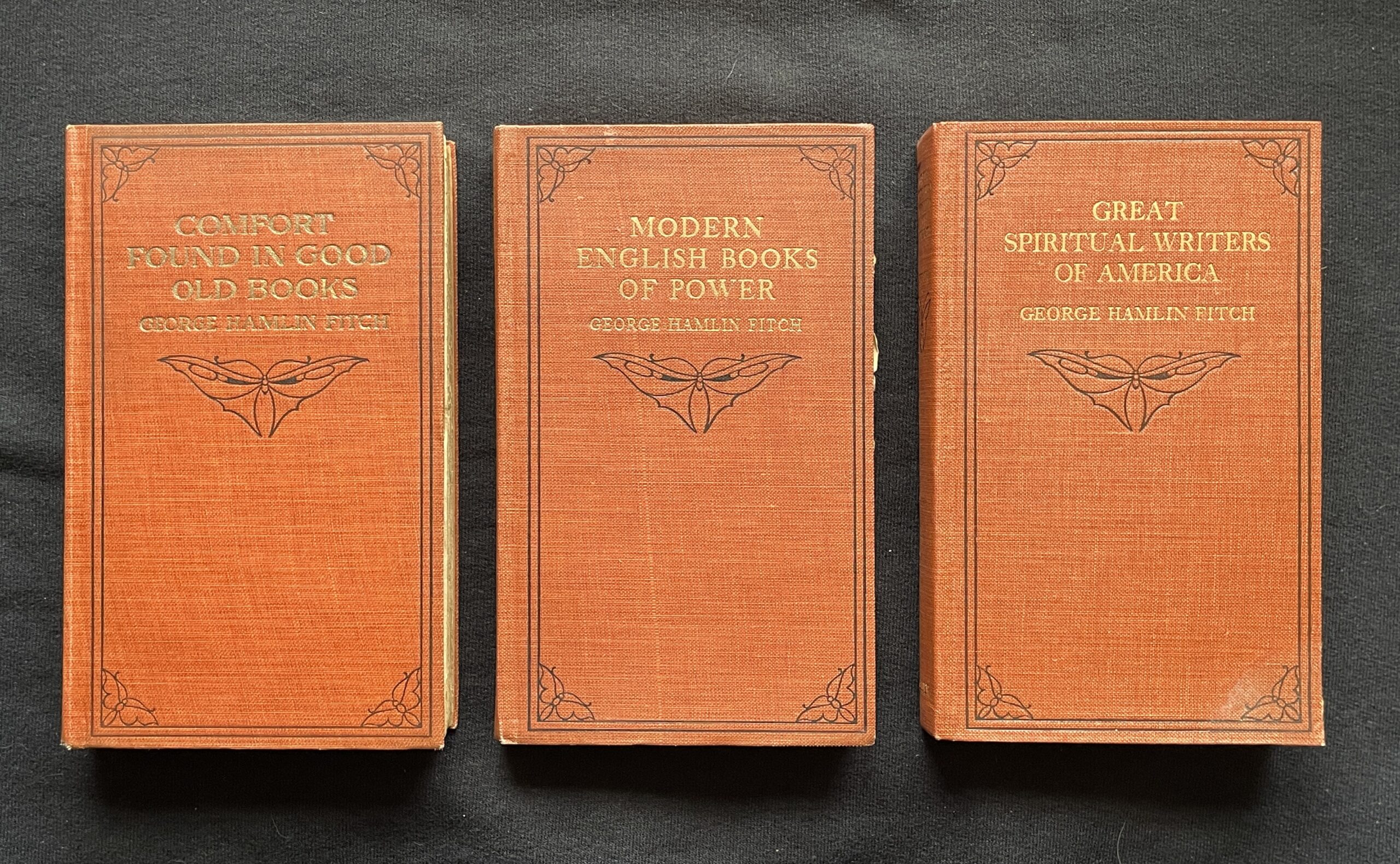 Comfort Found in Good Old Books, along with two later Fitch volumes, Modern English Books of Power and Great Spiritual Writers of America, in matching “butterfly” covers
